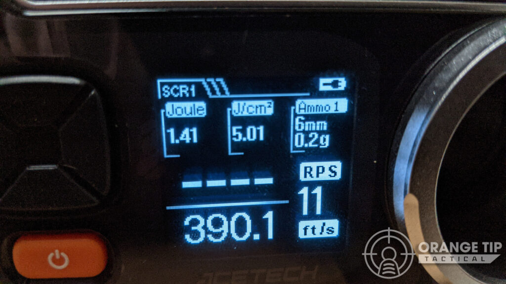 Loading the gun’s midcap up with .20g BBs, we managed to record some pretty rad muzzle velocity results!